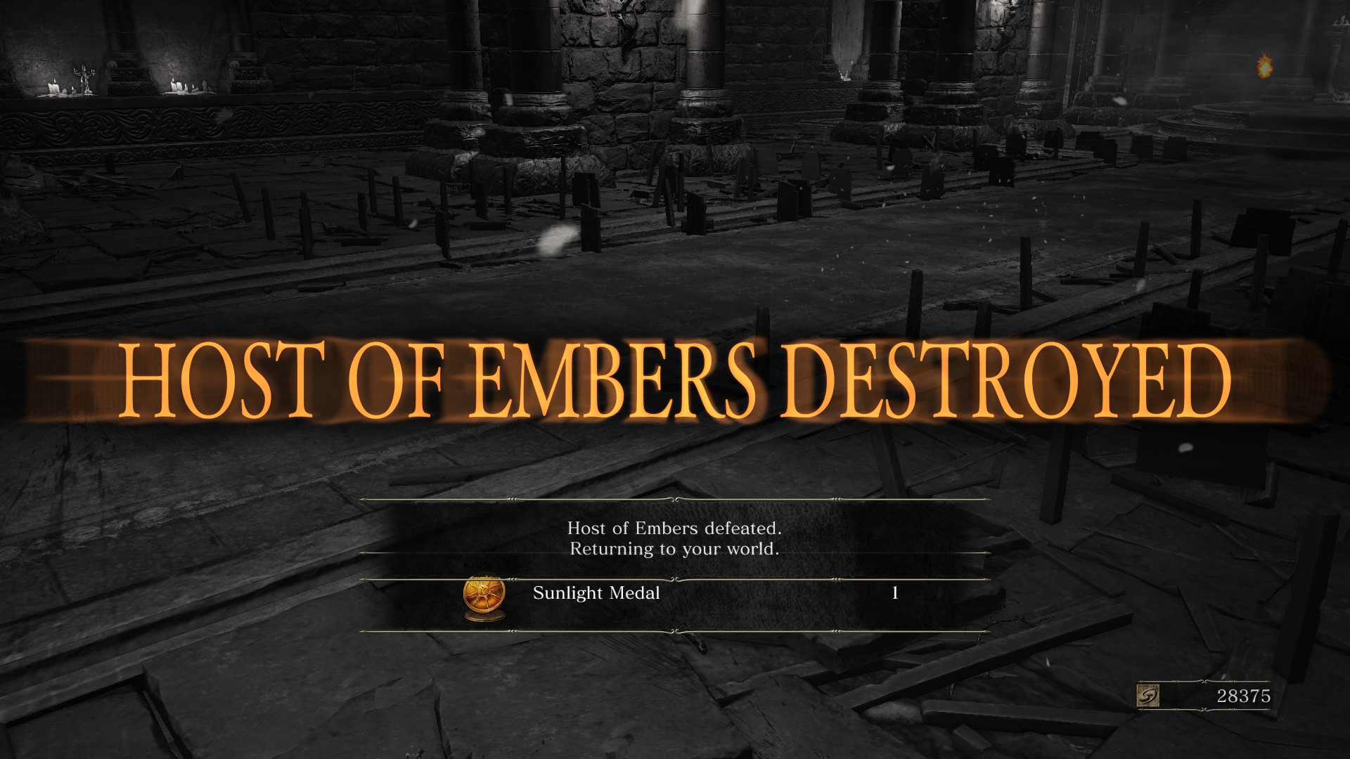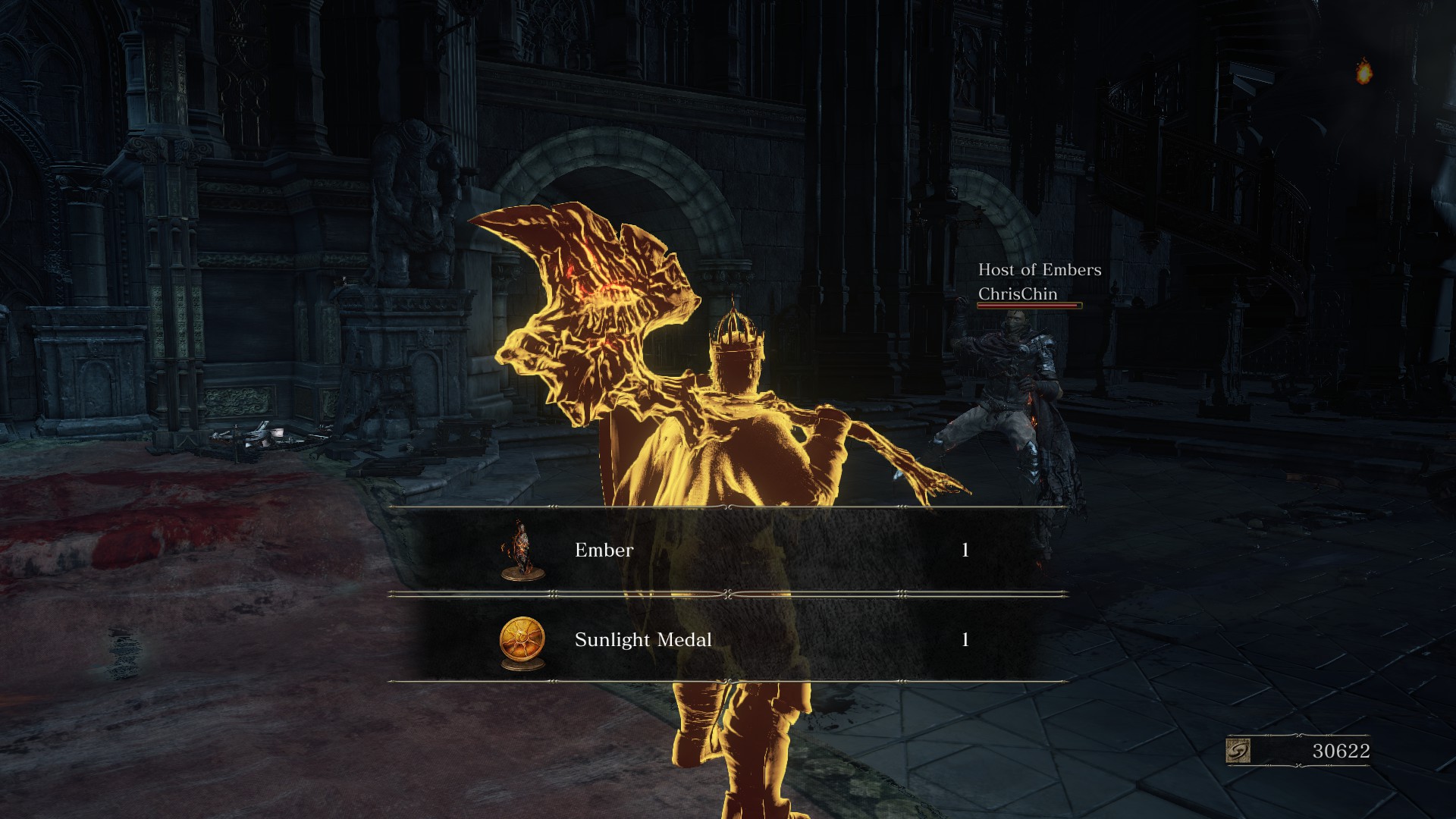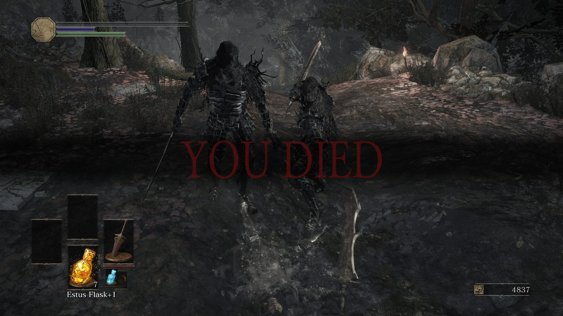 No more Estus Flasks left, was one hit away from being killed, so I ran in and did a suicidal attack while this boss was preparing to attack and got really lucky... I also Thor'd this boss too, apparently...
